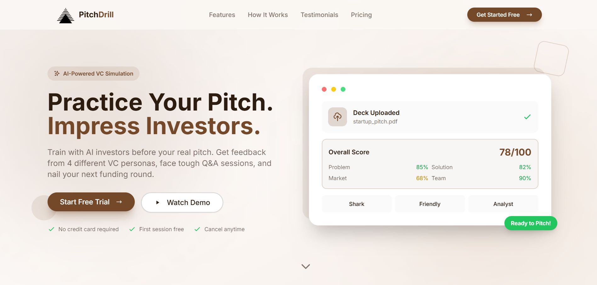 Yapay zeka destekli pitch simülasyonu ve sanal VC kurulu uygulaması. Girişimcilerin yatırımcı sunumlarını pratik yapabilecekleri ve AI tarafından değerlendirme alabilecekleri interaktif platform.